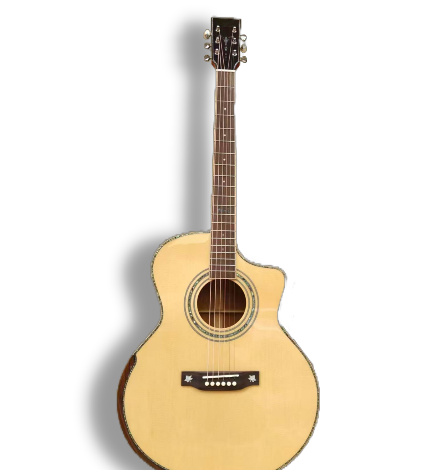 Guitar body configuration:41-inch glossy all-solid body with a natural wood color (hand-reliant design)